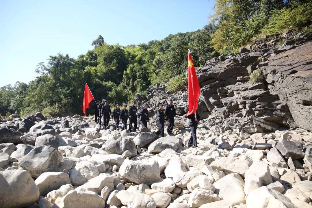 巡逻路上,山路陡峭崎岖,荆棘丛生,民警们需要翻山越岭,用双脚丈量国界线。有时候遇到难走的路段,需要大家齐心协力,相互之间帮助才能通行。转改民警李严魏今年已是第三个年头没回家陪父母过年了。这条30多公里的巡逻路以前都是杂草从生,一年365天来回穿行在林子里,硬生生的走出一条巡逻路。在密林深处他们的身影和足迹,是他们用青春和汗水戍守边关、用脚步丈量祖国防线、用行动默默践行“边境有我,请祖国放心”的铮铮誓言。