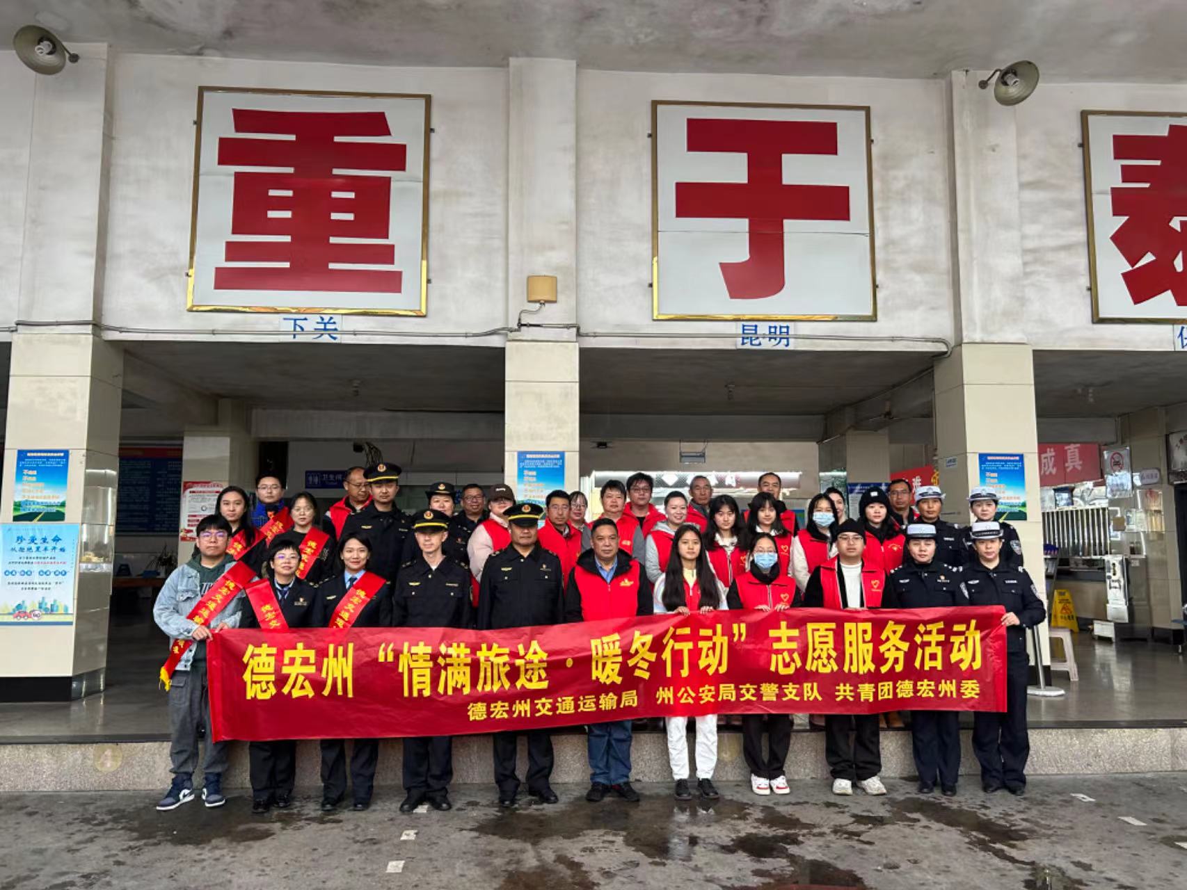 1月26日,德宏州“情满旅途 暖冬行动”志愿服务活动启动,德宏州交通运输局、州公安局交警支队、共青团德宏州委的30余名青年志愿者参加启动仪式。