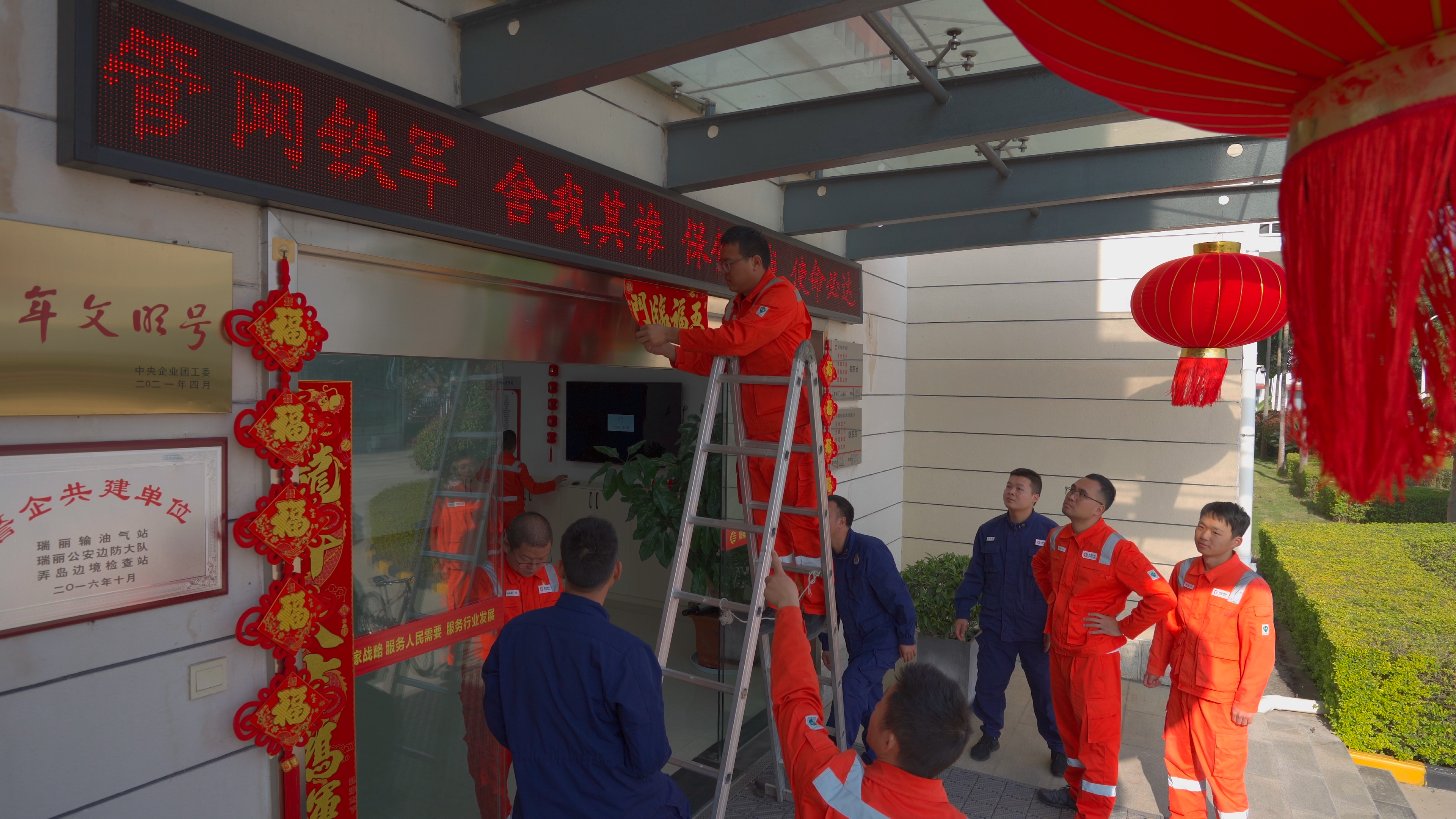 大年二十九,瑞丽作业区内喜气洋洋。员工们贴春联、挂灯笼,辞旧迎新,为站场增添节日氛围。