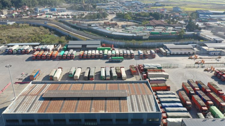 货场内停满了大货车。(瑞丽市委宣传部供图)