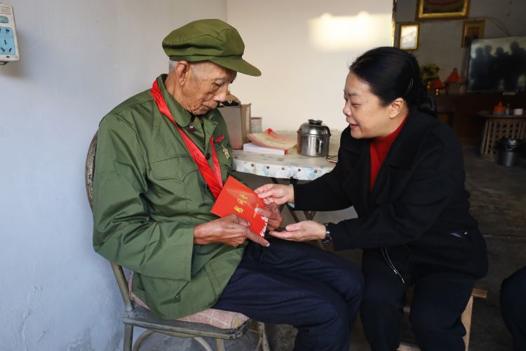 来到风平镇法帕村拉赛村民小组,慰问组与79岁的老党员项岩石促膝长谈,倾听老人讲述峥嵘岁月,感谢他为党和国家作出的贡献,并仔细询问老人的日常起居情况,叮嘱相关部门关心老战士、老同志,让他们安享幸福晚年。