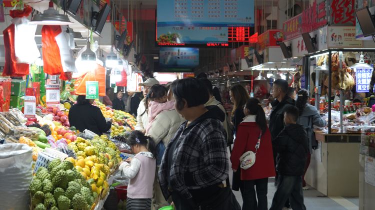 芒市宏利综合市场内,商家们早早就备齐了各类货品。水果区,饱满的果实散发着诱人的光泽,果香四溢;干果摊前,各类果脯应有尽有;鲜肉区,肉品新鲜的色泽彰显着品质;腊味区域更是弥漫着独特的香气……这一切构成了春节食材的豪华阵容。