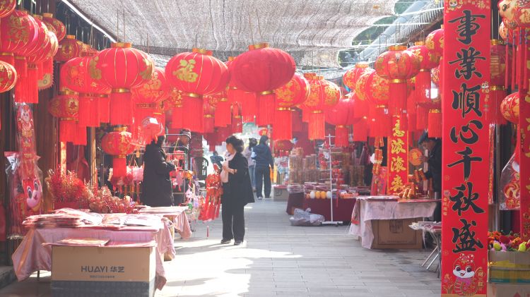 走进珠宝小镇年货市场,喜庆的氛围瞬间将人包围。挂件、窗花、灯笼、对联……每一样都在诉说着对新年的喜悦。