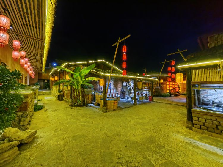 玖贤别院凭借“土里土气”的风格吸引了大量游客。泥巴墙、木横梁、青瓦房、红灯笼等构成的土屋错落有致,渔货铺、老茶铺、火塘别有滋味,老茶碗、老桌椅搭配乡村土菜,游客沉浸在旧时乡土烟火味的同时,仿佛能听见百年前马帮走过的“叮当”。