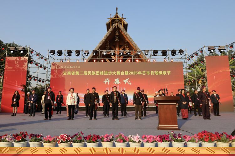 省直、州直有关单位领导,部分州离退休老领导,各县(市)景颇族学会代表、祝贺团,参加云南省第二届民族团结进步大舞台暨2025年“云南舞蹈大家跳”的26个民族代表队,各学(协)会、民族民间群众文艺团体代表,相关企业、专家学者参加开幕式。(德宏融媒记者 张智仁 蒋薇 李芷妤)