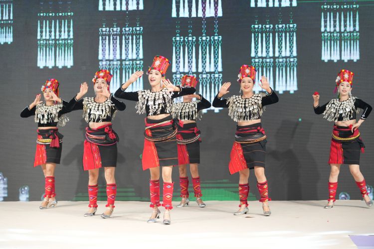 在展演推介舞台及展馆内,德宏独具民族风情的歌舞表演轮番上演,成为展区一道亮丽的风景线。激情四溢的景颇族舞蹈《银泡舞》,舞者们身上的银泡随着欢快热烈的节奏叮当作响,灵动活泼的舞姿瞬间点燃现场气氛;热情奔放的景颇族刀舞,刚劲有力的动作、铿锵的节奏,尽显威武之气,引得四方宾客纷纷驻足观看;一曲《幸福时光哦嘫嘫》,歌声悠扬,传递出德宏人民的幸福与热情;《器乐联奏》更是以独特的民族乐器演奏,带来一场充满自然之美的听觉盛宴。这些精彩表演,让德宏文旅馆人气持续爆棚。