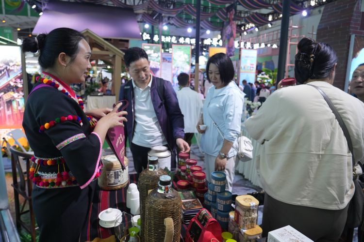 在第9届中国—南亚博览会暨第29届中国昆明进出口商品交易会现场,“有一种叫云南的生活”旅居云南主题馆内,德宏展区以“边境旅居胜地”为主题,向八方宾客生动展示了一个融合自然生态、民族文化与开放活力的边境旅居新图景,成为馆内人气热点。