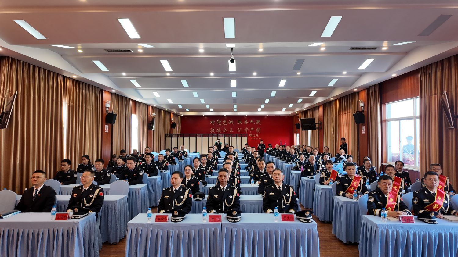 州公安局相关领导向退休老同志致谢,赞扬他们恪尽职守、敢打敢拼的优良作风为全警树立了标杆,祝愿老同志们身体健康、阖家幸福,期盼他们常“回家”看看,继续为德宏公安事业发展建言献策。同时对新警提出殷切期望,勉励他们坚定理想信念,做对党忠诚的践行者;刻苦钻研业务,做攻坚克难的担当者;严格自我约束,做纪律严明的战斗者,扣好从警生涯“第一粒扣子”,传承老一辈公安民警的光荣传统。