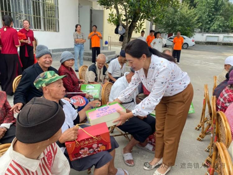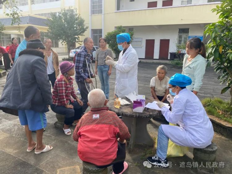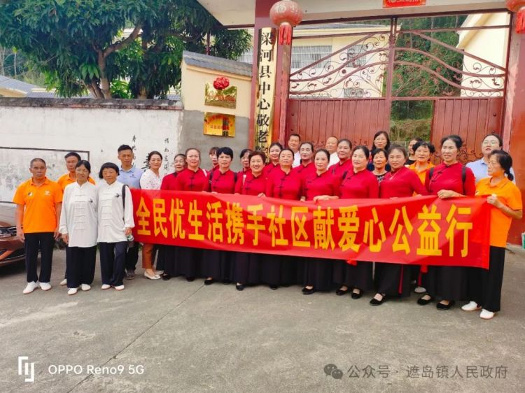 志愿者们与老人们围坐在一起,聊家常、谈生活,听他们讲述过去的故事,同时,志愿者也向他们介绍了遮岛镇最新发展情况。