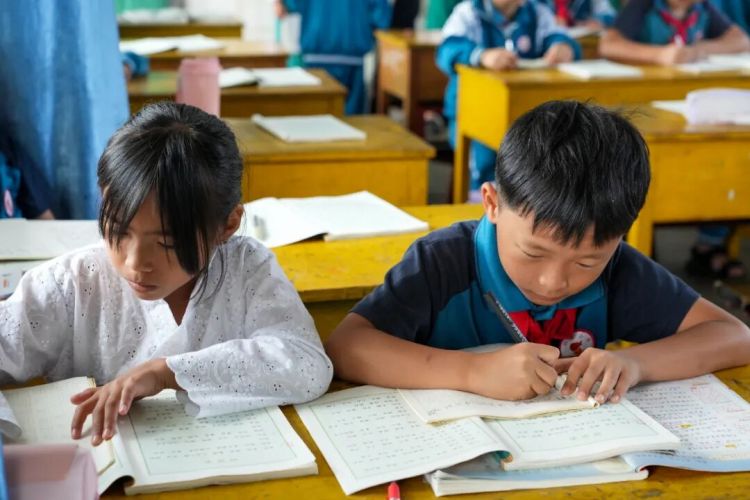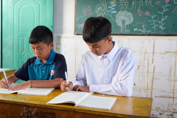 校园里书声琅琅,6个教学班的280名学生中,有47名来自缅甸的小小“留学生”。13岁的缅甸男孩谬咩昂和中国孩子并肩而坐,认真的跟着老师一字一句地朗读课文,一笔一划地书写汉字。当遇到生词时,老师总会耐心地走到他身边,俯身指导发音和笔顺,“你的汉字写得越来越好了。”老师的鼓励让他更加自信。在这所只有12名教师的小学校里,每个孩子都能得到充分的关注,老师们不仅传授知识,更用爱心消融着国界的距离。