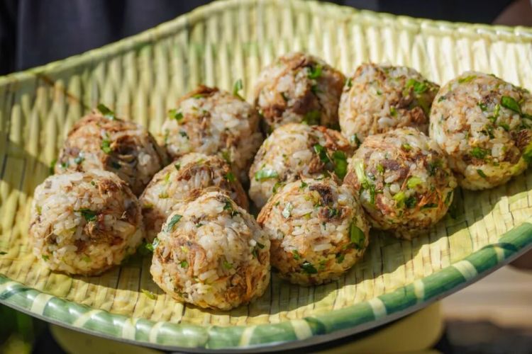 揉搓均匀之后,取一团饭,趁热在掌心反复揉捏、攥紧。手掌的温度让米饭更加黏糯,力道让米粒间紧密融合。这个过程,充满了原始的仪式感,仿佛将景颇人对山野自然的理解与生活的热情,都一并揉进了这团饭里。