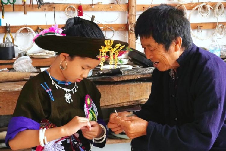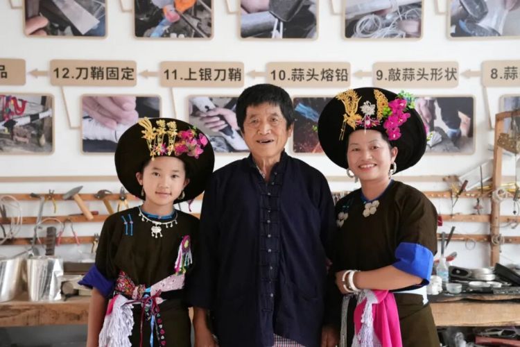 李换芝与银饰的缘分,早在6 岁那年就已结下。那时,她便跟在父亲李成光身边,看着父亲将一块块普通的银料变成精美的银饰。13岁起,李换芝开始接触银饰制作中较复杂的工序。锻打时要掌控好力度,让银料逐渐成形;拉丝时需屏息凝神,确保银丝均匀光滑;清洗时更要细致入微,让银饰焕发光彩。她每天专心致志地学习,常常忙碌到深夜才休息。功夫不负有心人,20 岁时,年轻的李换芝已熟练掌握了银饰制作的全部技艺。