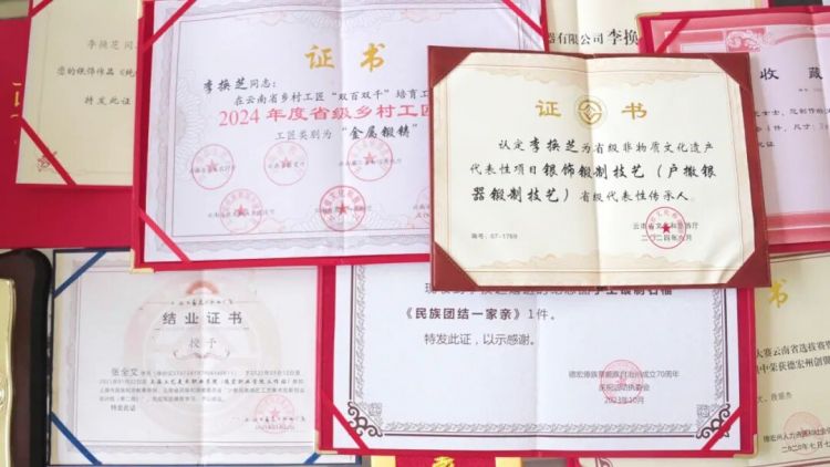 在李换芝的记忆里,父亲的话语始终萦绕耳畔:“佩戴银饰寓意着平安吉祥,制作银饰就是一錾一锤将祝福融进银饰里。”这份对银饰的理解,让她对待每一件作品都如同对待艺术品。她希望人们佩戴这些银饰时,能感受到其中蕴含的祝福,触摸到匠人手上的温度。