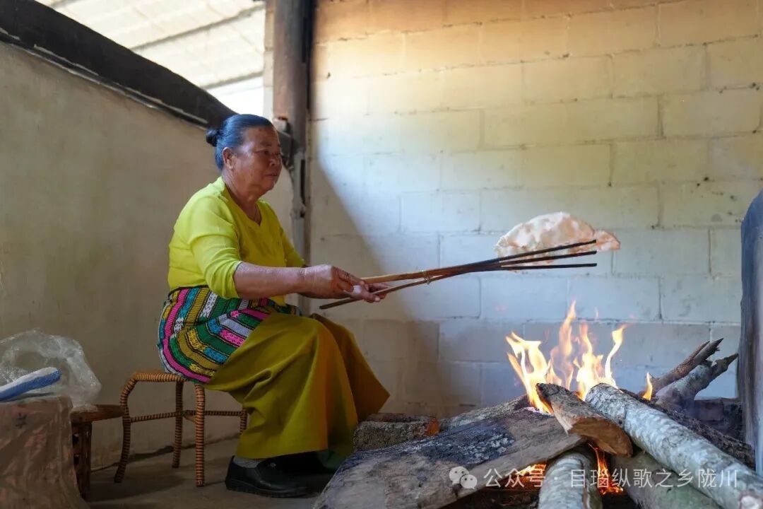 最后一道工序,便是文火慢烤。取一把傣家自制的竹制夹子,轻轻夹住饼坯,反复翻面,直到饼身鼓胀如气囊,轻薄得能被微风卷起,风吹粑粑便由此得名。咬下一口,糯米的清甜与红糖的焦香在舌尖迸发,酥脆口感令人回味。