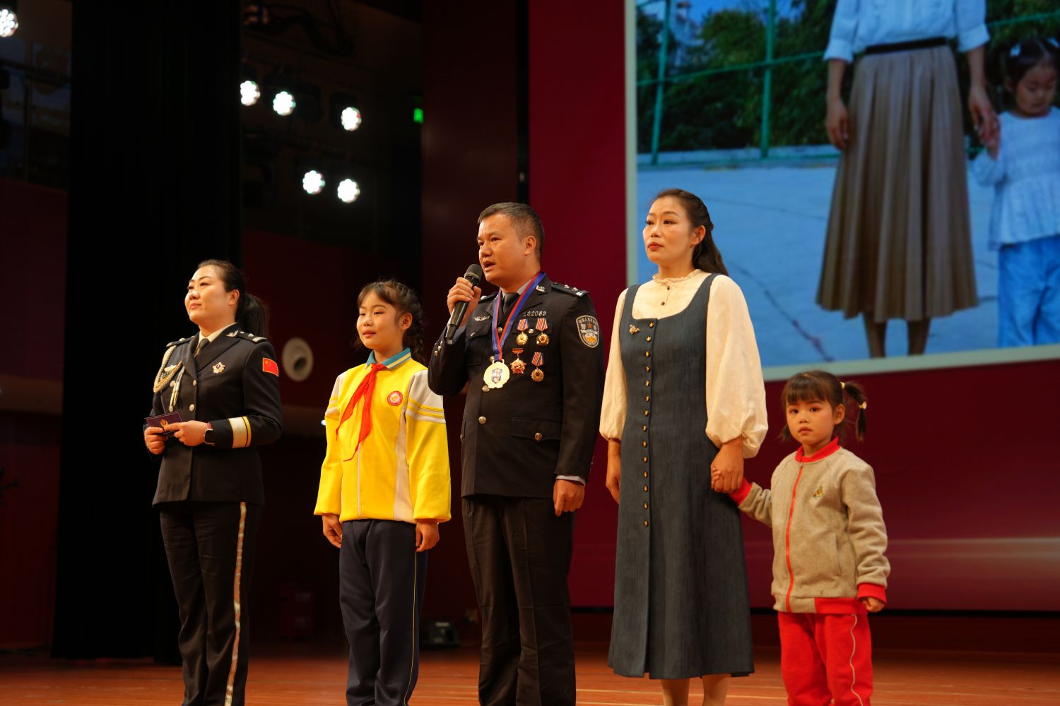 晚会以“警徽荣光·家国同心”为核心,创新采用“节目展演+荣誉表彰”穿插进行的形式。表彰环节,相关领导为2025年度表现突出的先进集体、个人三等功获得者、“芒警之星”及优秀辅警代表颁发荣誉证书和奖牌。台下响起阵阵掌声,向获奖集体和个人致以热烈祝贺。