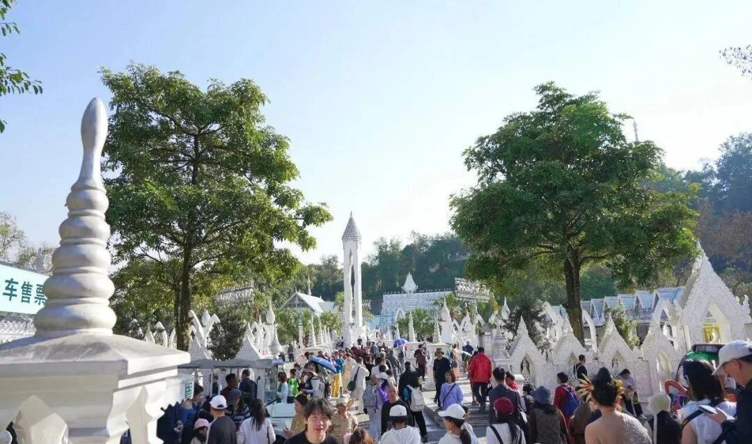景区爆棚,解锁限定美好。全市A级景区日均接待近53000人次,其中两天单日接待突破70000人次。勐焕大金塔鎏金溢彩,银塔素净澄明,树包塔奇绝相依……处处人潮涌动,镜头定格的瞬间,都是独属于芒市的新春记忆。