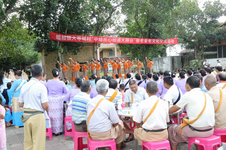 近日,瑞丽市姐相镇贺赛村大等喊村民小组组织开展“中缅民心相通大舞台”敬老爱老文化交流活动。