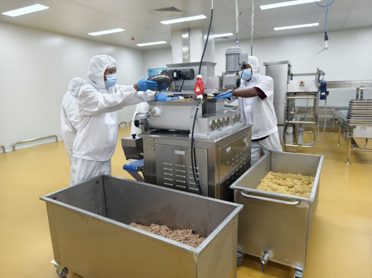 2025年金秋,工厂智能化生产线启动,让双料云腿的咸香、黑芝麻酥的醇厚、鸳鸯馅的甜蜜,跨越国境线,直抵中国消费者的舌尖。聂纪食品有限公司携百年老字号聂记新月楼落地畹町,投资4200万元,占地22.49亩,总建筑面积达1.6万平方米,涵盖研发中心、智能化生产车间、员工生活区及配套设施,打造产研一体化的现代化食品基地。