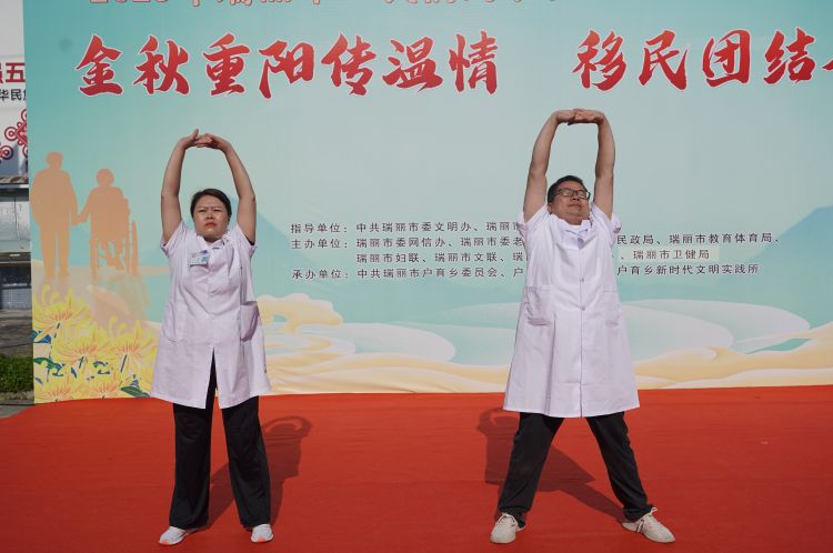 10月29日清晨,户育乡瓦兴村民小组的小广场已飘起热腾腾的烟火气。2025年瑞丽市“我们的节日·重阳——金秋重阳传温情 移民团结展新风”文明实践活动在此启幕。活动打破行政区域界限,吸引户育乡、勐卯街道、姐相镇、瑞丽农场的汉族、景颇族、德昂族、傣族等多民族200余名老人共赴盛会,用一场融合健康、文化、团结的盛宴,诠释“边疆一家亲”的温暖内涵。