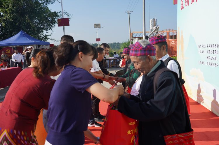 特别关怀让温暖直抵人心。76周岁的老人收到定制的“重阳安康”礼包,一名景颇族大爷攥着礼包感叹:“像收到家人心意一样!”老年人运动会上,套圈、投壶等项目让老人们舒展筋骨,笑声在竹楼间回荡。政策与法治关怀同步跟进,市搬迁安置办负责人详解移民住房、产业扶持政策;法律专区结合案例讲解反诈、《中华人民共和国民法典》涉老条款,手册发放处排起长队,老人边看边念叨:“这些事,得记牢!”