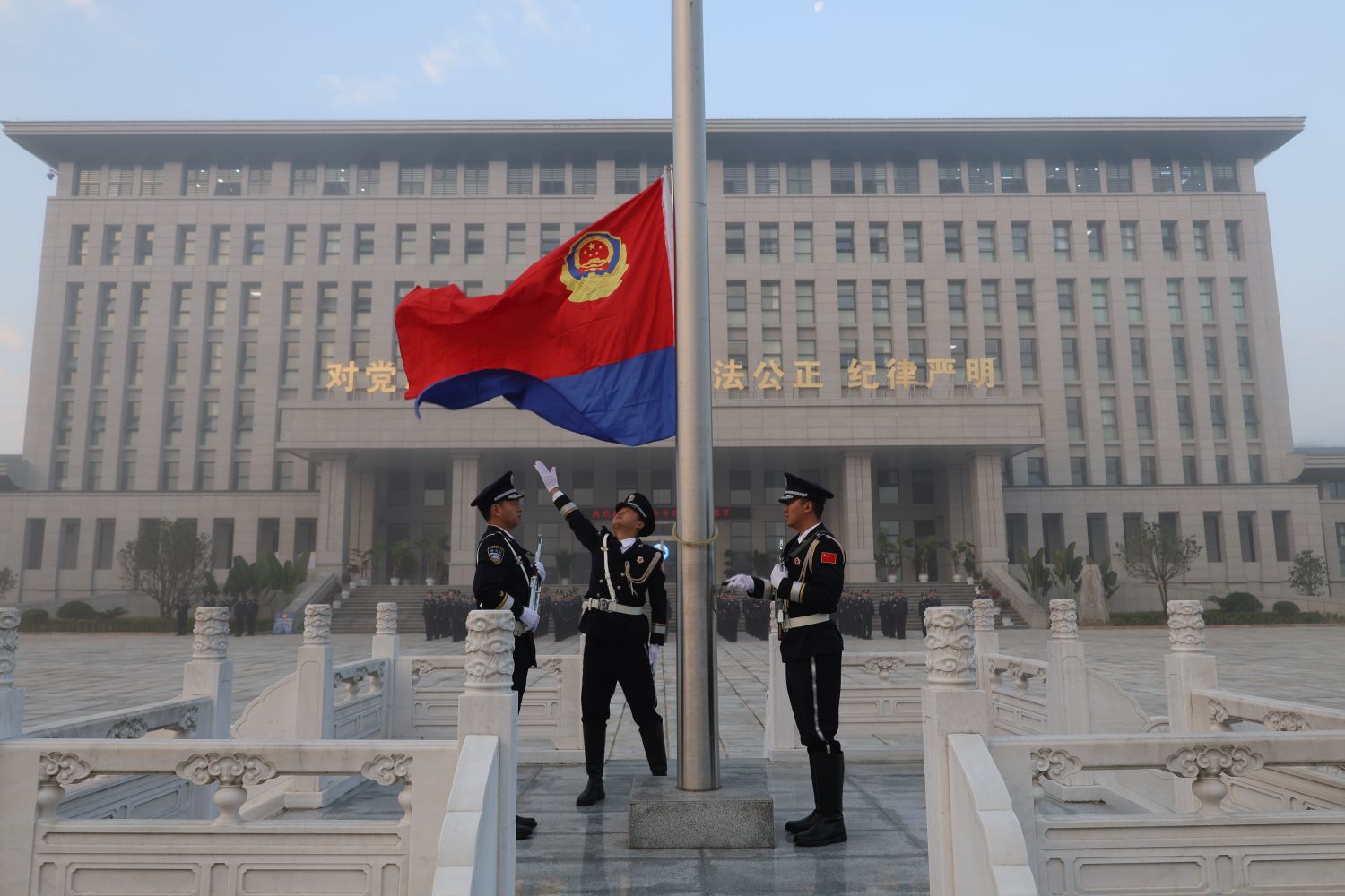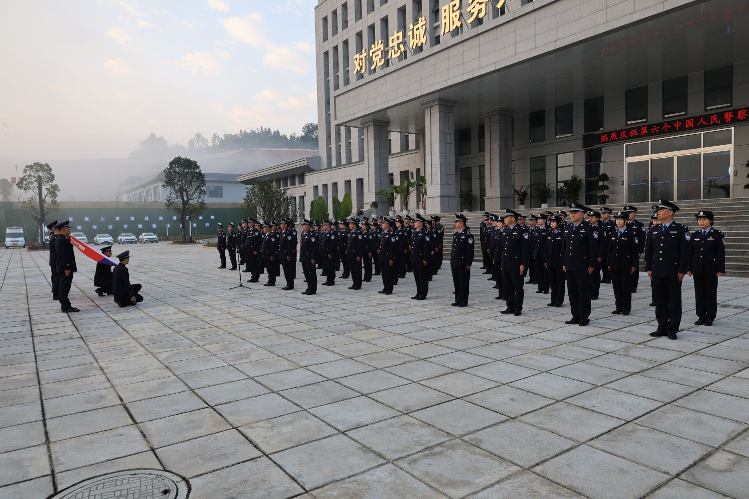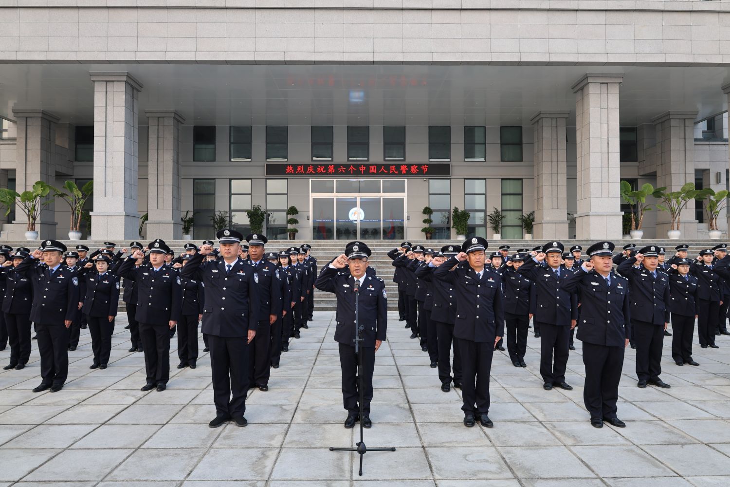 仪式开始,民警们整齐列队,护旗队员昂首挺胸、精神抖擞,迈着矫健整齐的步伐护送中国人民警察警旗走向旗台。在雄壮的《中国人民警察警歌》声中,鲜艳的警旗迎着金色阳光缓缓升起。全体民警身着春秋常服,庄严肃立,向警旗敬礼,表达对党、对国家、对人民、对法律的无限忠诚。