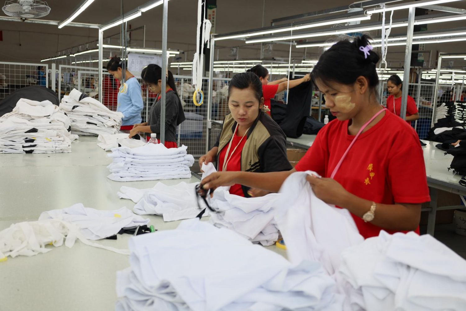 (缅籍工人在瑞丽沿边产业园区服装生产企业务工。)