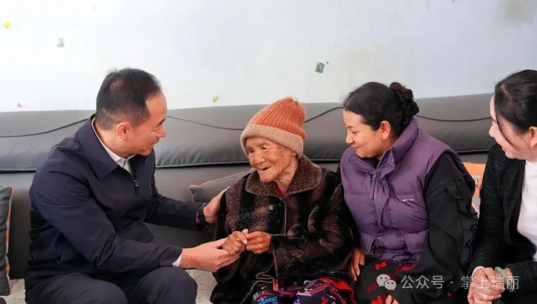在勐卯街道勐力村勐力村民小组,毛晓与百岁老人及其家属促膝长谈,关切询问老人的饮食起居、身体健康状况,叮嘱相关部门用心用情做好养老服务保障。在芒喊村,毛晓与孩子亲切交谈,鼓励他们勤学上进、健康成长。毛晓要求,要始终将关爱“一老一小”作为民生工作的重中之重,持续织密织牢关爱服务网络,以政策兜底筑牢保障底线,以温暖服务厚植幸福底色。