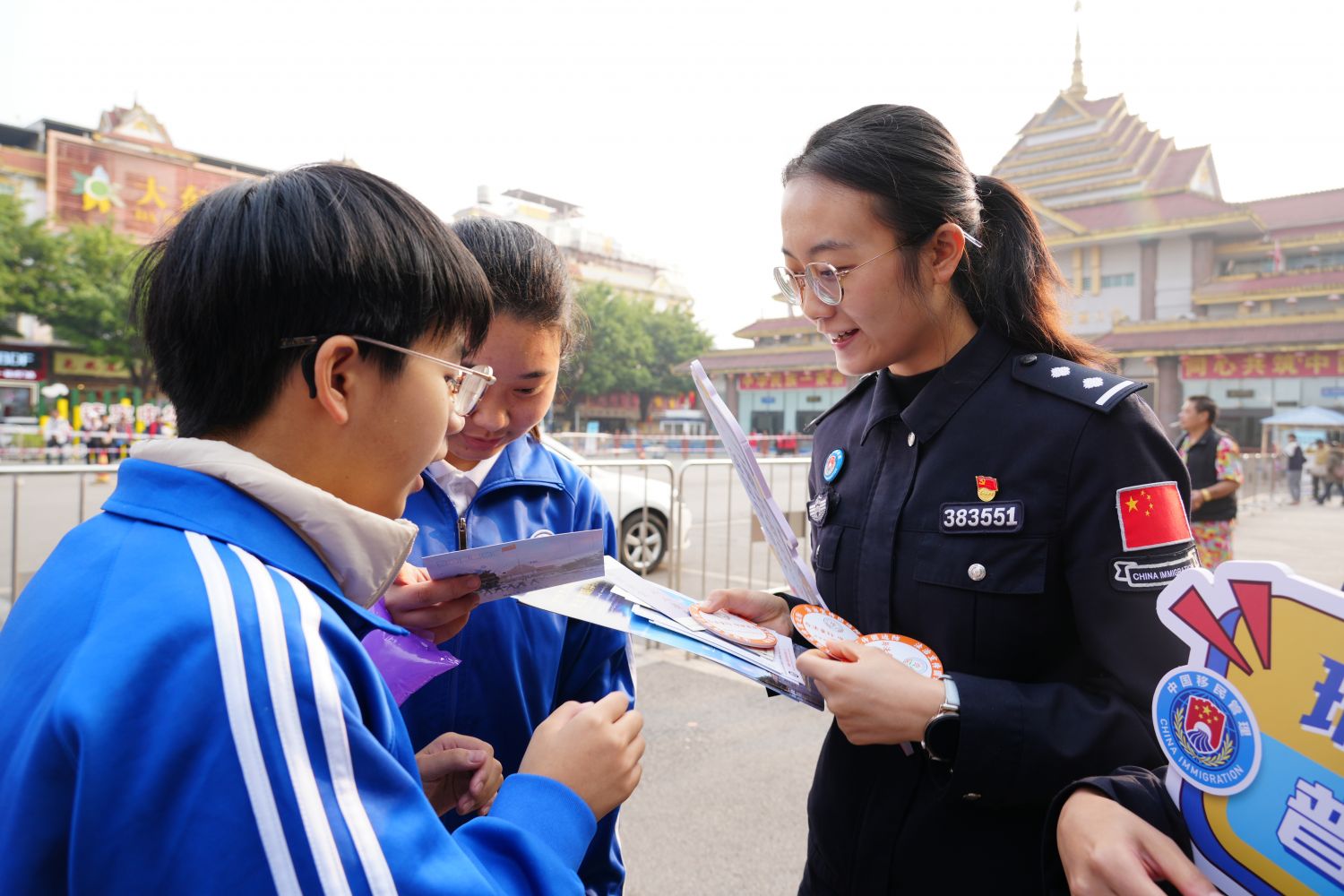 瑞丽出入境边防检查站根据赛事跨境性、人员多元性特点,立足口岸职能,将赛事保障与普法宣传相结合,在口岸限定区域周边设置多个普法宣传点位。现场布置了“依法出入境,平安伴我行”等醒目标语,将法治理念融入赛事景观。该站组建普法小队,在现场开展“以案释法”活动,用通俗语言和真实案例讲解出入境法律法规,重点解读妨害国(边)境管理、跨境赌博、电信诈骗等违法行为的危害。针对参赛选手和旅客关注的证件办理、通行规范等问题,提供一对一法律咨询。参赛选手李娜表示,这种融入赛事的普法形式直观、实用。
