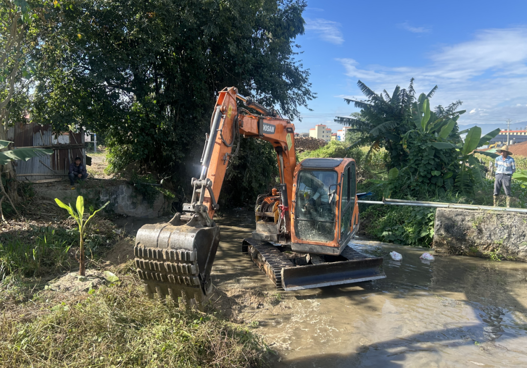水槽河重点清理姐列片区至盏达河交汇口河段,清淤工作同步于11月19日展开,主要清理内容包括淤泥、围垦、沿岸杂草及水面漂浮物,共组织30余人参与作业。截至11月20日,已完成清淤0.6万立方米,清除围垦0.5亩,治理河道400米。
