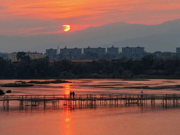 大盈江晚霞如熔金漫过天际