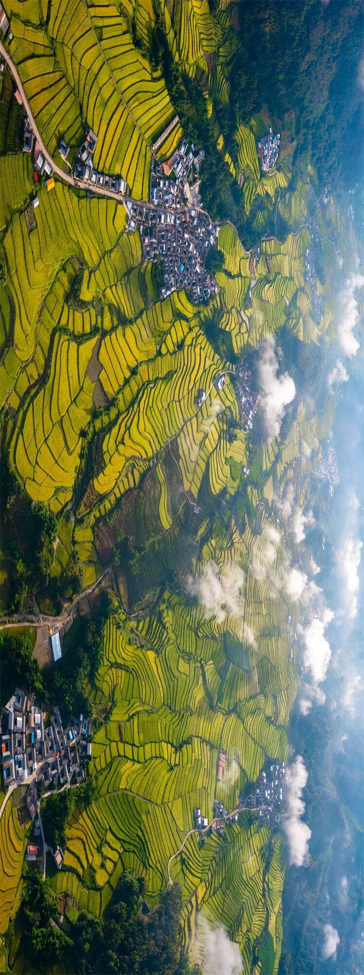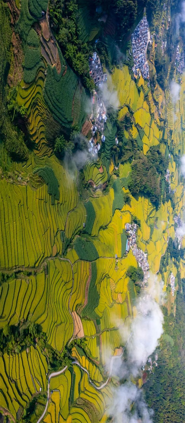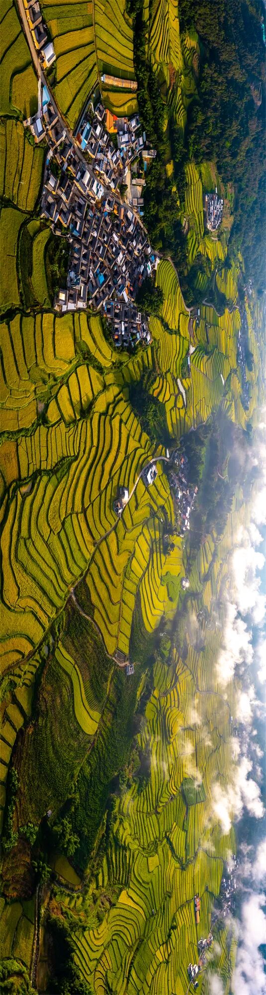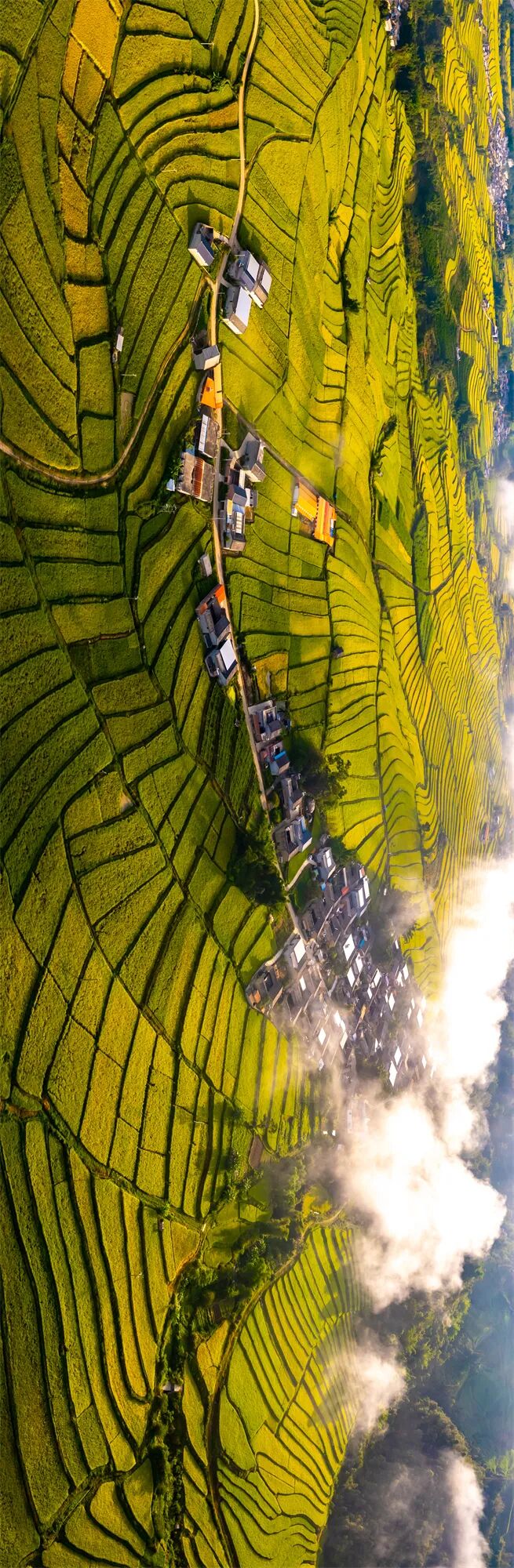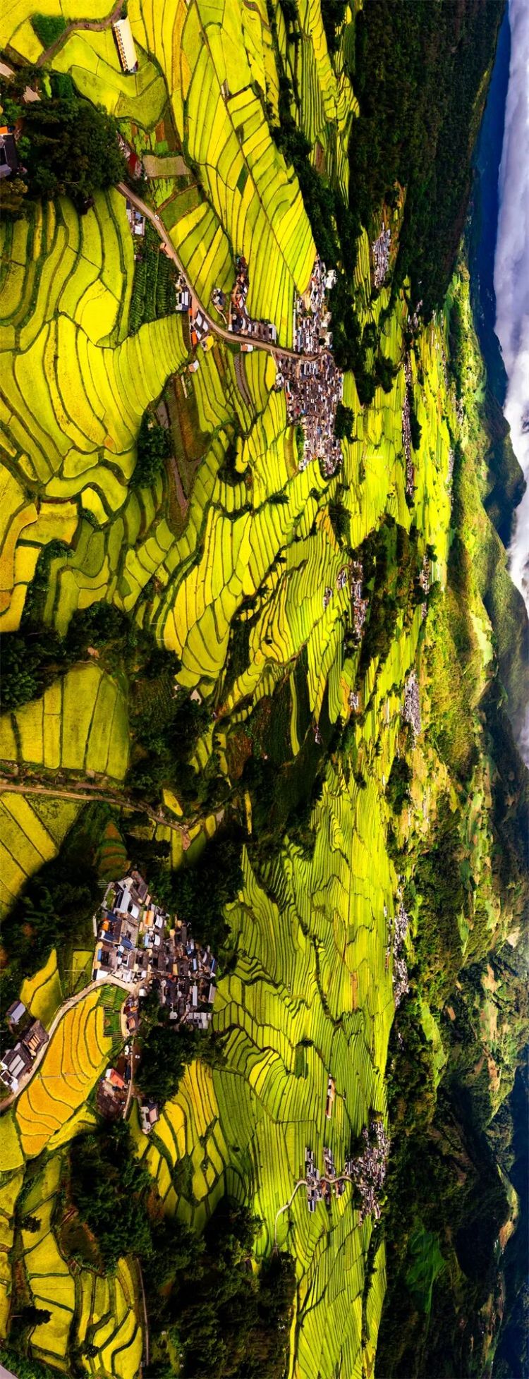 田垄从山脚攀向云端