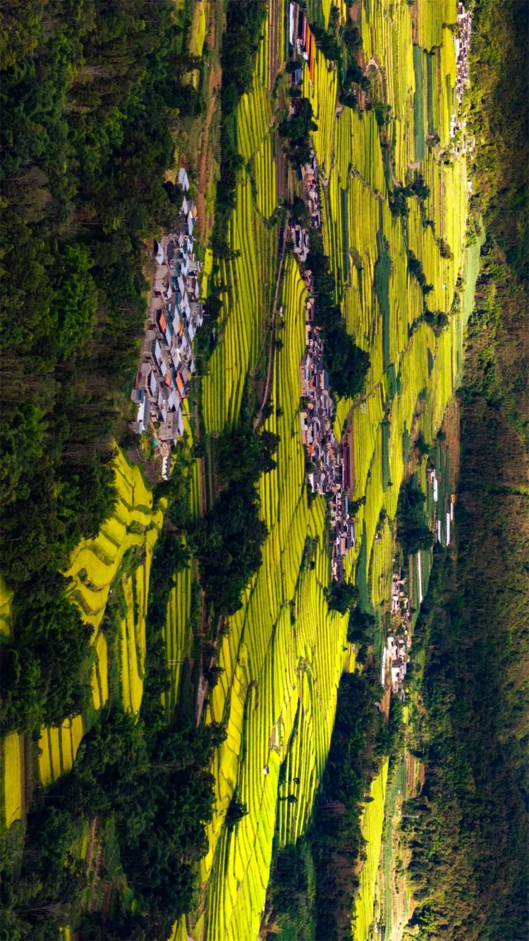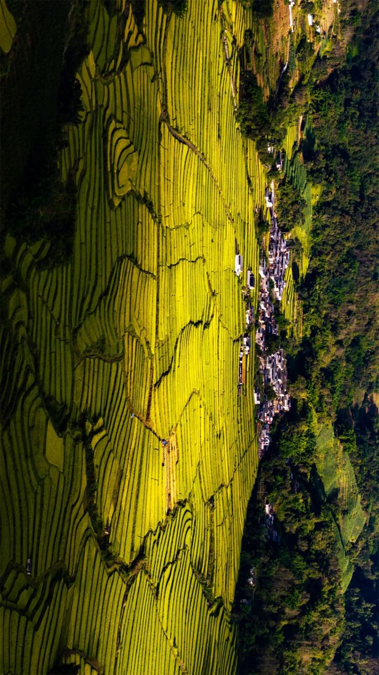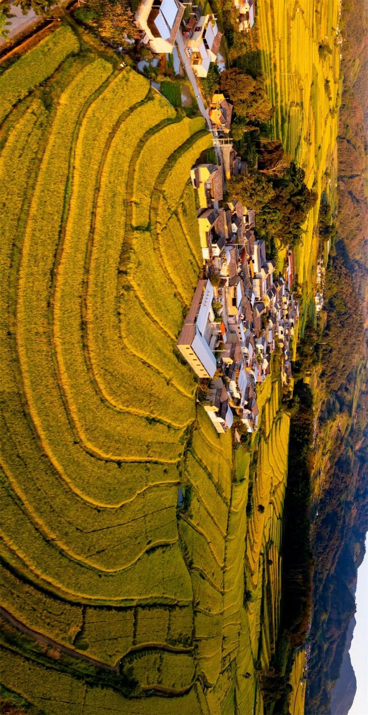 秋阳给每级田梯镀上暖光