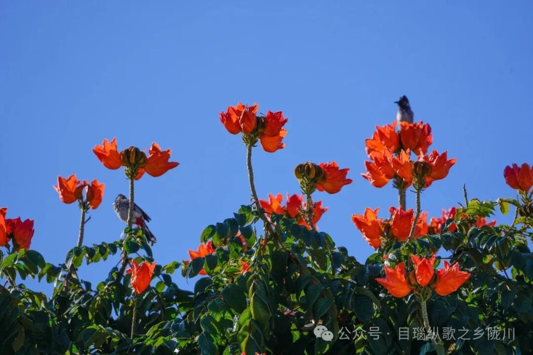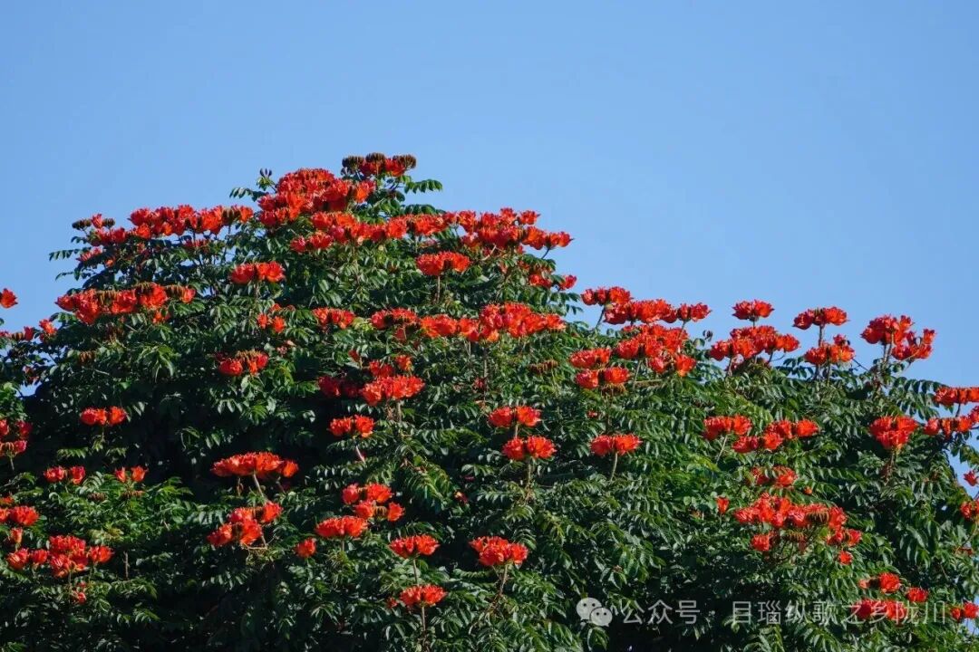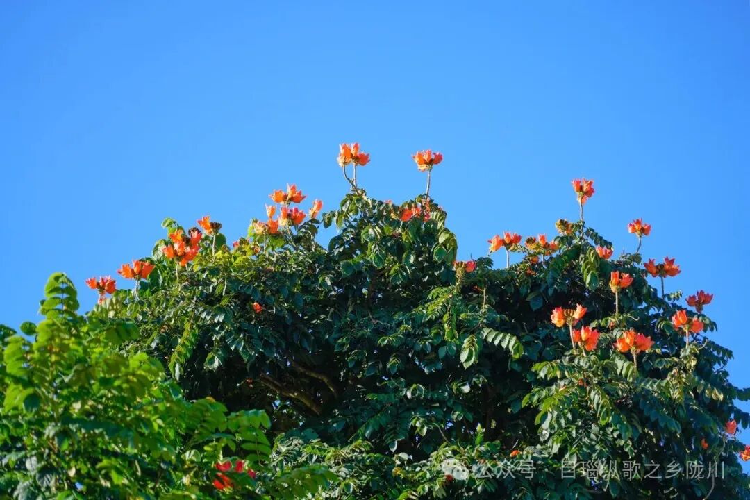 火焰花开在陇川的路边、公园的角落,也开在茶园的埂边,更开在每个陇川人的冬日记忆里。它早已不只是一束花、一道风景,更是这片土地在寒冬里写给春天的信,字里行间全是藏不住的暖意与希望。