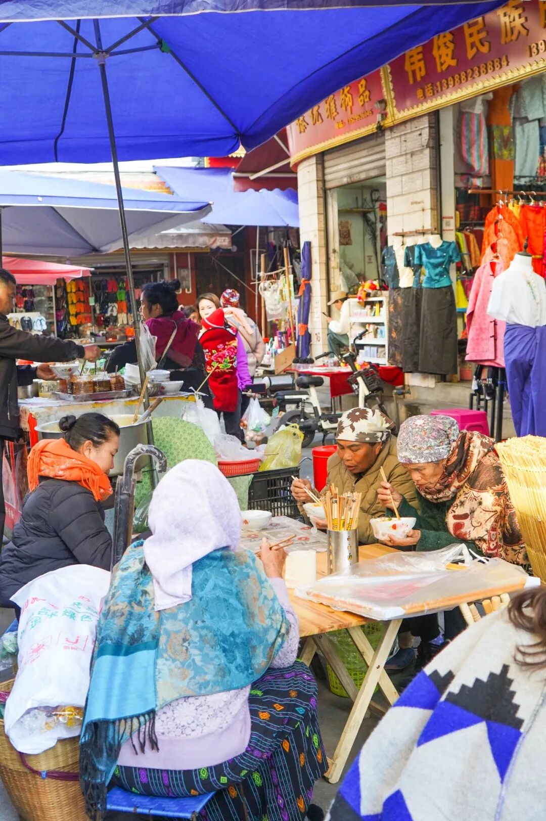 街两旁,绚丽的傣锦“唰”地展开