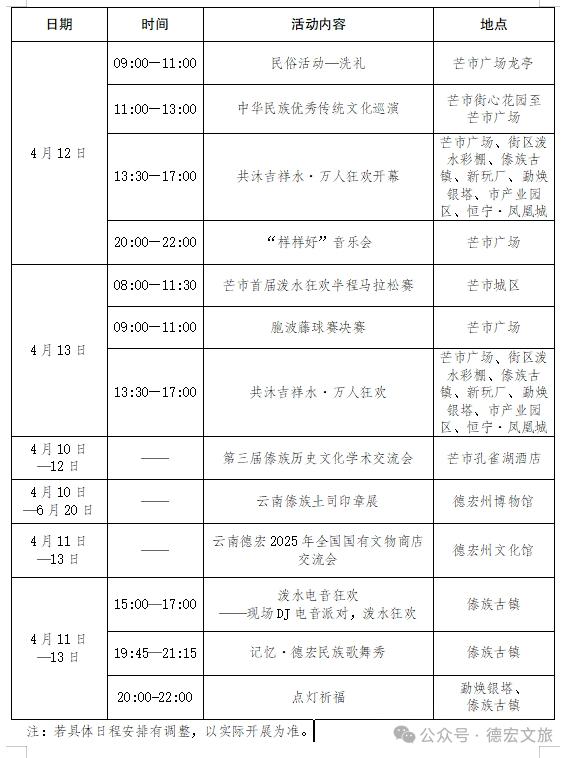 ④4月的德宏温度可达30℃,尤其是中午开始的泼水活动,要做好防晒,及时补水