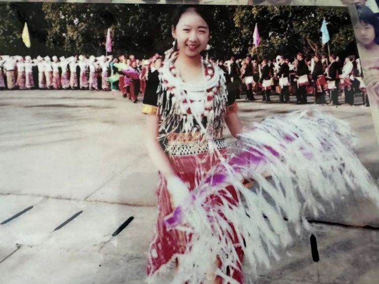 何娜薇出生在陇川,父亲是当地有名的瑙双,从小就在载歌载舞的欢乐氛围中长大。“哇,我的父亲在队伍最前面耶!”每次目瑙纵歌,看着领队的父亲,她感到十分骄傲,“成为父亲那样的人”的目标也逐渐印刻在何娜薇的心中。