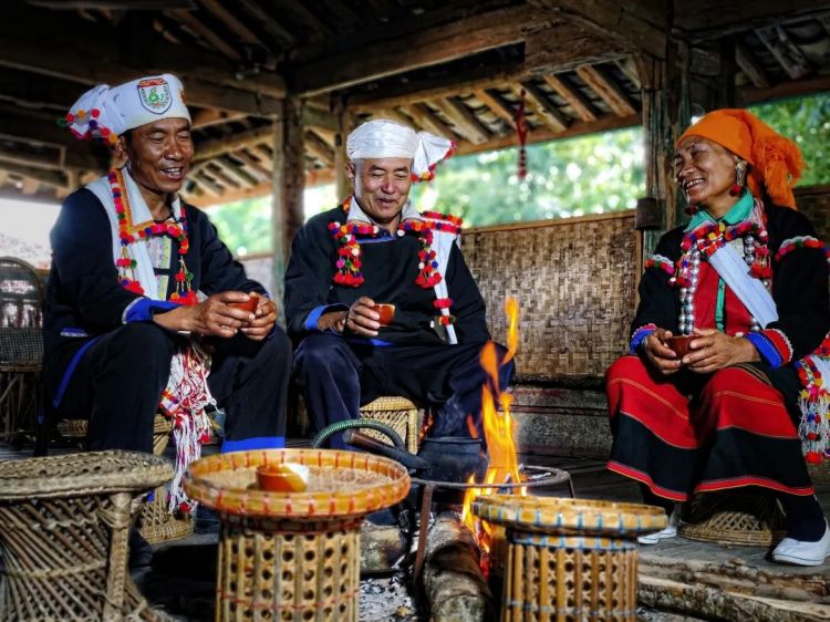 与德昂同胞围亮堂的火塘前