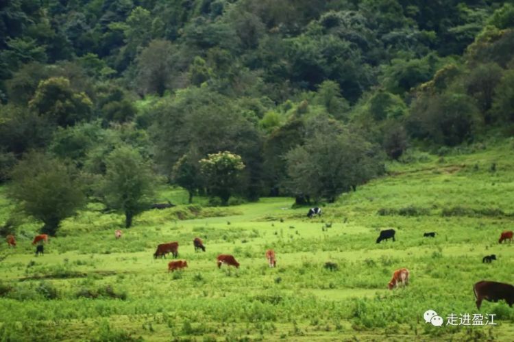 葱郁的树木与点点牛羊