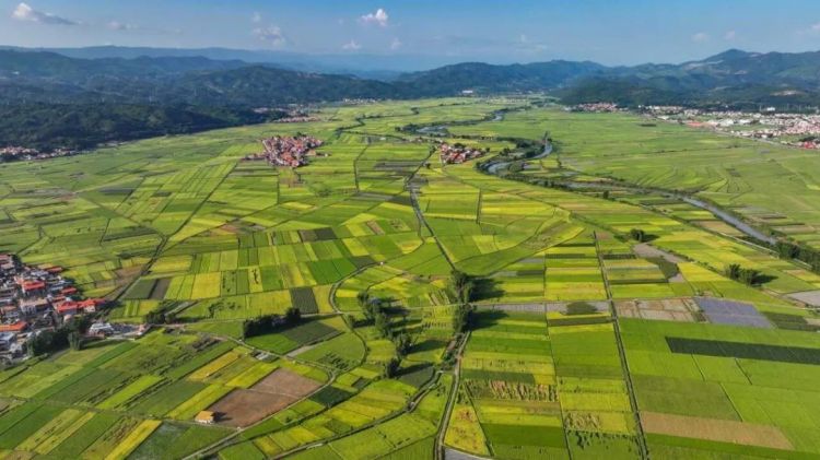 被大片稻田环绕着