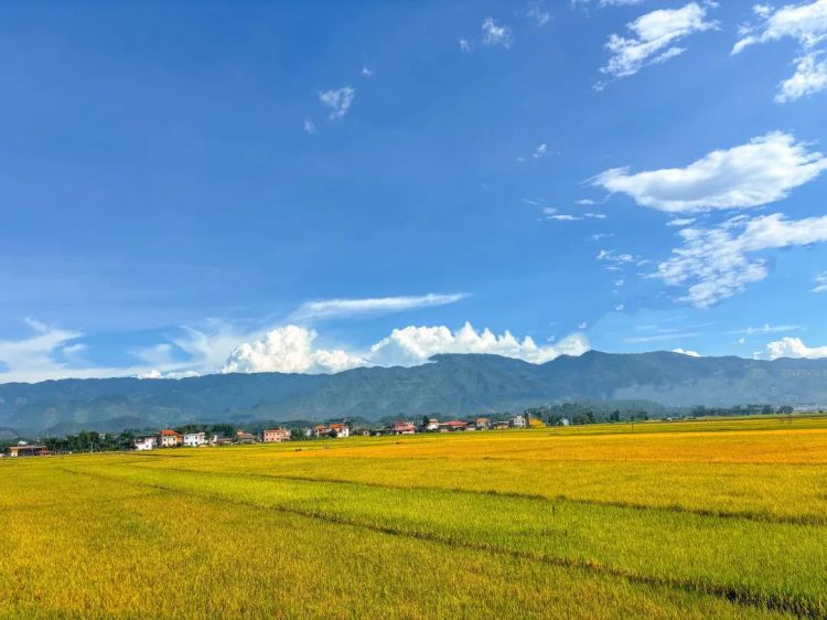 只见窗外一大片金灿灿的稻浪