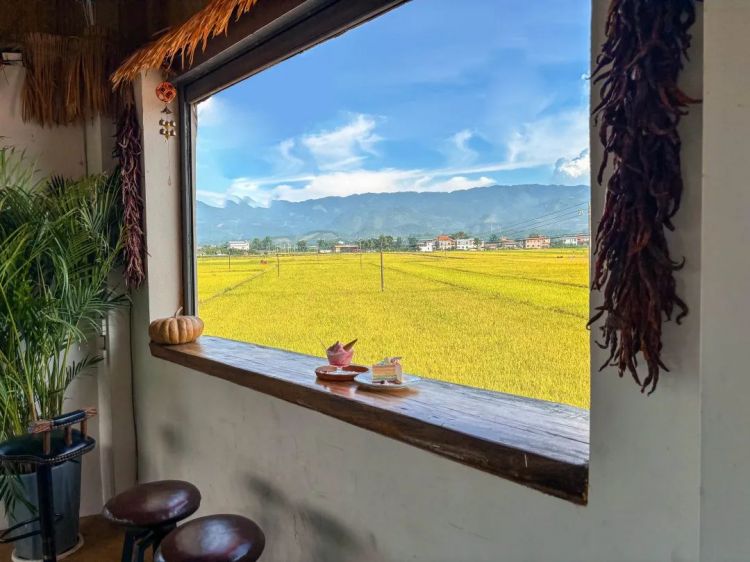 点杯贡米香拿铁,对着稻田发呆
