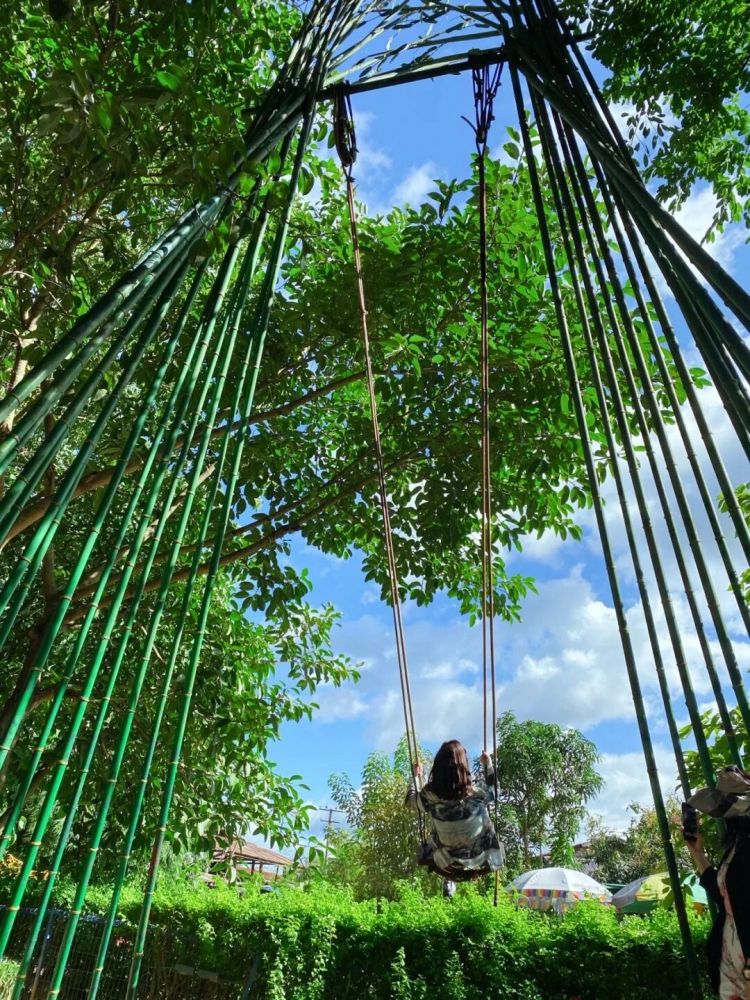 脚上踏着人字拖,身上裹着五彩“笼基”