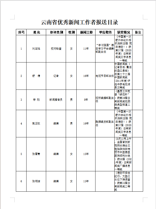 根据《中共云南省委宣传部 云南省人力资源和社会保障厅 云南省新闻工作者协会关于开展2025年云南新闻奖和云南省优秀新闻工作者评选工作的通知》要求,现对德宏州融媒体中心拟推荐参评2025年云南省优秀新闻工作者进行公示。