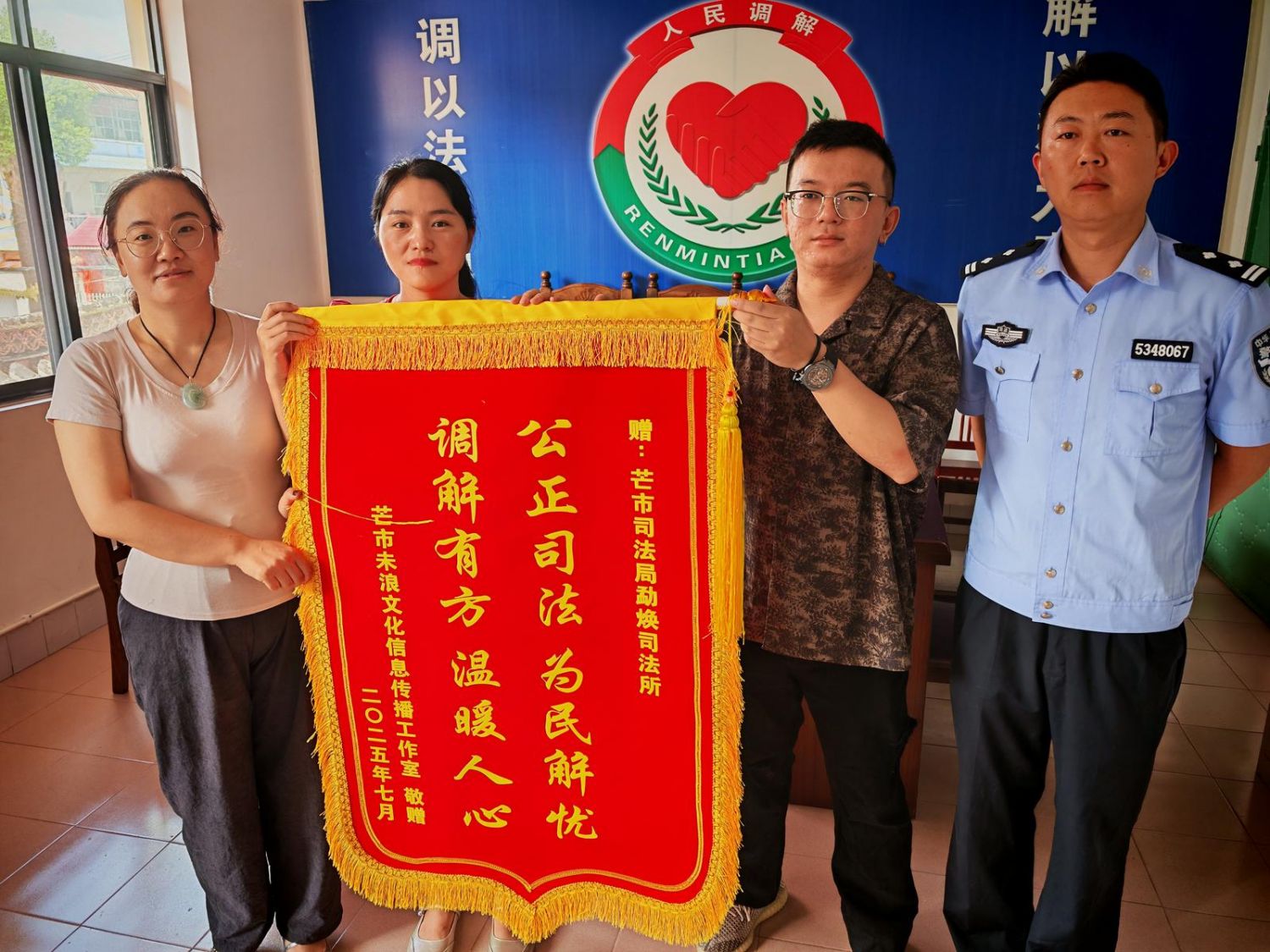 勐焕司法所只有4名工作人员,虽规模不大,却扛起了辖区矛盾纠纷化解、法治宣传、法律服务的重任。2025年以来,这个小小的司法所已成功调解各类纠纷110件,调解满意率实现100%,并收获5面锦旗。红绸金字的锦旗上,“公正司法,为民解忧”“高效规范办实事,热心贴心为人民”等话语,是司法所化解矛盾、守护民生的生动见证。