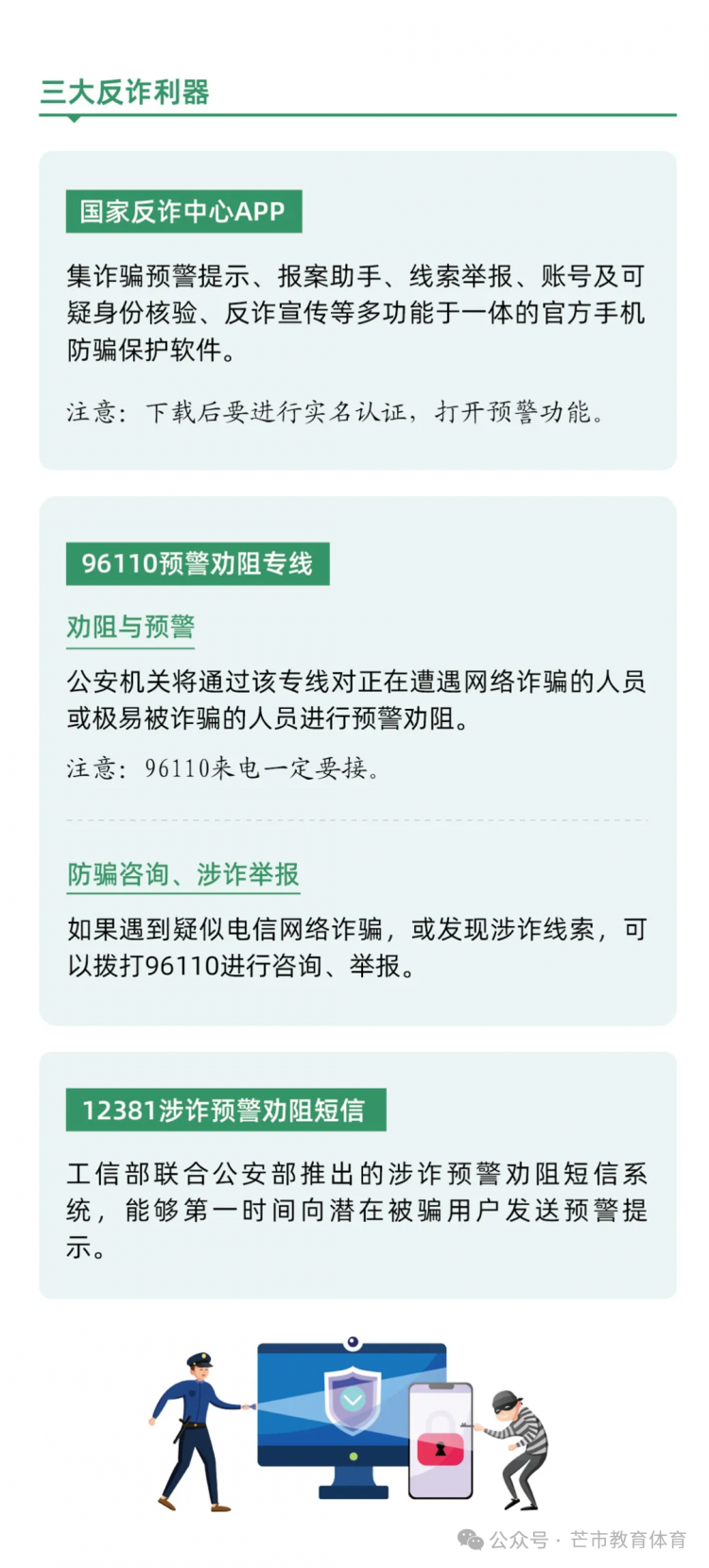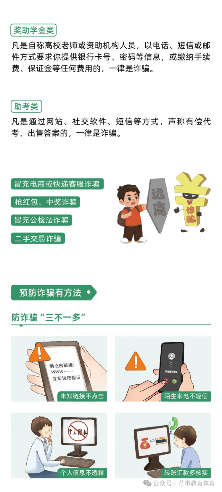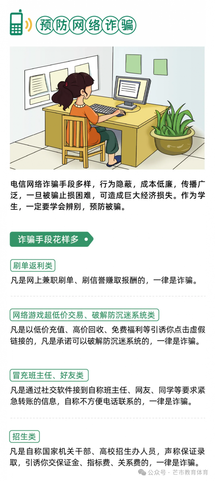 尊敬的家长朋友: 您好! 2025年9月15日至21日是国家网络安全宣传周,今年的活动主题为“网络安全为人民、网络安全靠人民 —— 以高水平安全守护高质量发展”。 为切实引导孩子们增强网络安全意识、提升风险防范技能,养成文明上网、安全用网的良好习惯,值此宣传周之际,希望能与各位家长携手并肩,共同筑牢家庭网络安全防线,为孩子的健康成长保驾护航。 一、做“安全引导员”,筑牢安全防线 1.警惕高频诈骗:向孩子讲清“免费游戏皮肤”“扫码领红包”“教育退费”等常见骗局,提醒其不透露家庭支付信息、不随意转账或游戏打赏。 2.守护个人隐私:教育孩子不轻易公开姓名、学校、住址等真实信息,不随意在社交平台晒定位、露隐私,注册APP时拒绝填写无关敏感信息。 3.辨别不良信息:引导孩子远离暴力、低俗内容,学会甄别网络谣言与极端言论,不传播、不模仿不良行为。 二、做“习惯养成师”,守护健康成长 1.共定上网规则:与孩子协商每日屏幕使用时长,明确睡前1小时不使用电子设备,避免沉迷网络影响学业与睡眠。 2.善用防护工具:为手机、电脑开启“青少年模式”,启用“家长控制”功能,安装正规防护软件并定期更新,过滤不良内容。 3.丰富现实生活:鼓励孩子多参与户外活动与集体项目,减少对虚拟空间的依赖,避免形成孤僻、淡漠的“网络性格”。 三、做“榜样示范者”,凝聚家校合力 1.树立良好标杆:家长以身作则践行健康上网习惯,不在孩子面前沉迷刷短视频、发表不当言论,用行动传递文明上网理念。 2.保持开放沟通:定期与孩子讨论网络见闻,了解其社交动态,当孩子遭遇网络欺凌或诈骗时,及时提供心理支持并第一时间求助或报警。 3.联动学校防控:学校将通过主题班会、实践活动等方式强化网络安全教育,若您发现孩子有不当上网行为或网络安全疑问,欢迎随时与我们联系。 家长朋友们,以下这份网络安全知识手册,建议您与孩子一同阅读学习,让我们以“家校共育”的力量,把网络安全的种子播撒在孩子心中! 芒市教育体育局 2025年9月18日