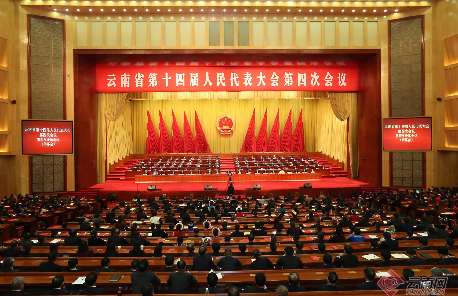 云南网讯(记者 杨猛左超郎晶晶)2月1日上午,云南省第十四届人民代表大会第四次会议圆满完成各项议程,在昆明胜利闭幕。大会号召,全省各族人民要更加紧密地团结在以习近平同志为核心的党中央周围,凝心聚力抓落实,只争朝夕加油干,马不停蹄、阔步前进,奋力实现“十五五”开好局起好步,为开创云南发展新局面而团结奋斗。