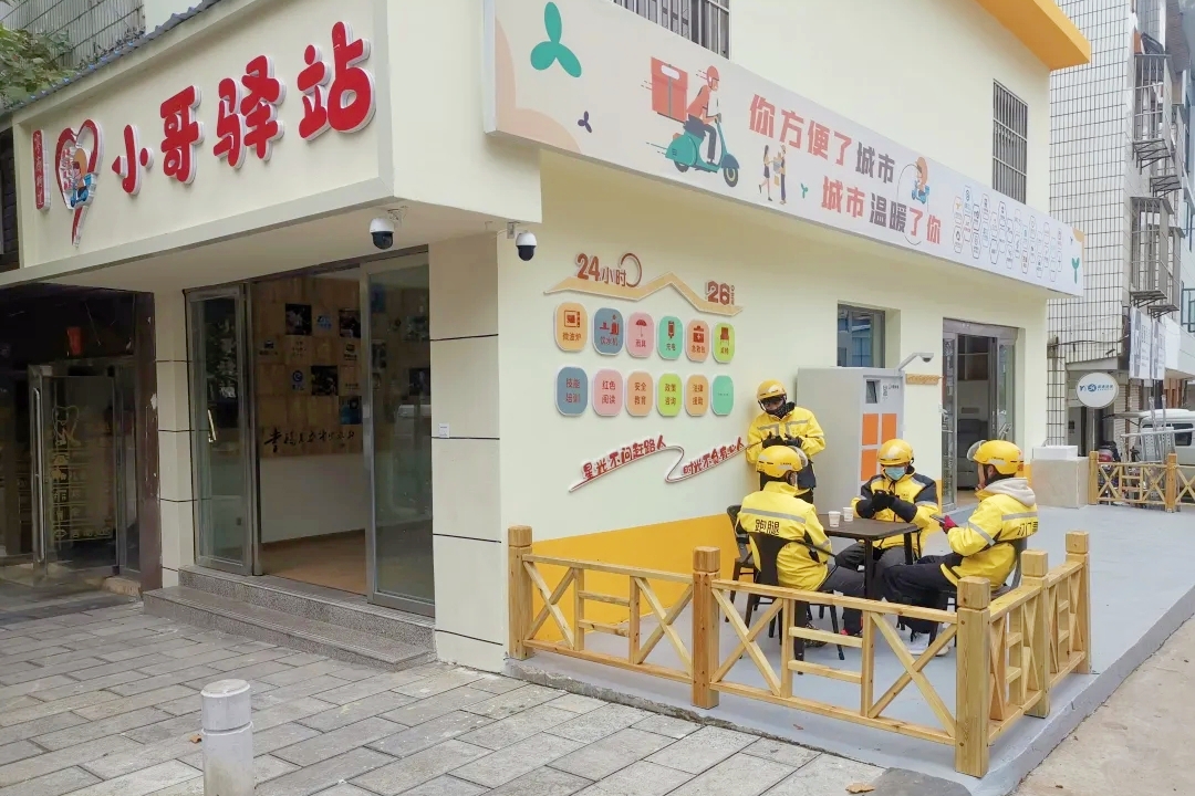 胜峰社区地处商业核心区,和平路商业街承载着30余年商业底蕴,周边万道星光广场、218广场、龙潭市井等区域商户密集,日均流动的外卖小哥、网约车司机等新就业群体超400人,占辖区美团专送骑手总量的一半。为回应这一群体“累了没处歇、饭凉没法热”的需求,2021年6月,社区主动放弃租房收入,腾出两间商铺,投资18.6万元启动驿站建设,于2022年10月正式投用,实现对辖区新就业群体的“零距离服务”。