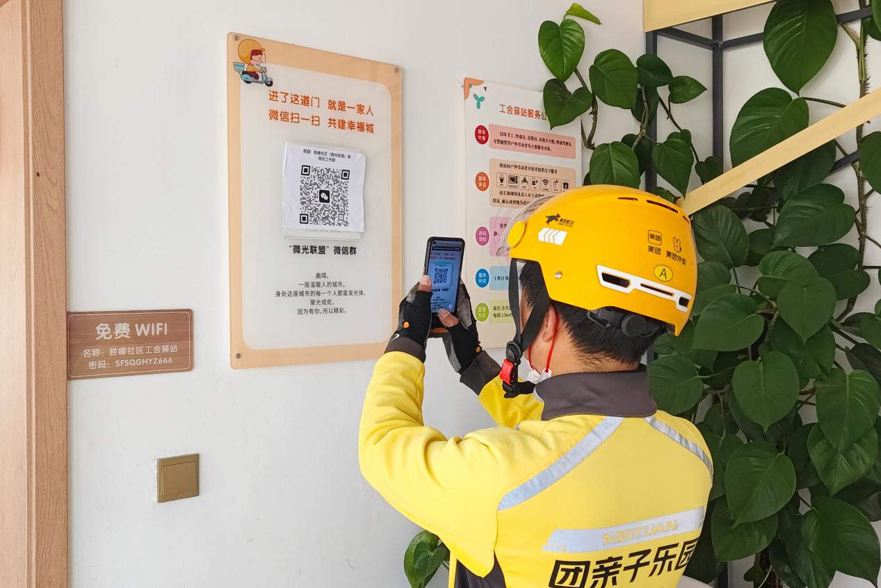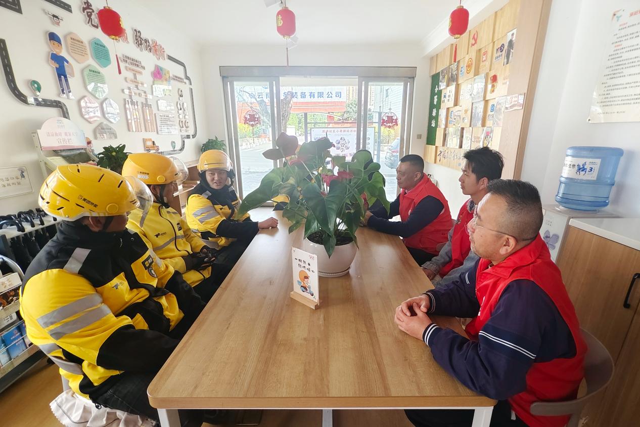 走进麒麟区寥廓街道胜峰社区“小哥驿站”,30余平方米的空间里,桌椅整齐摆放,饮水机、微波炉、应急药箱等设施一应俱全。微波炉加热饭菜的嗡鸣声,与外卖小哥、快递员、网约车司机们歇脚时的谈笑声交织,暖意十足。这里不仅是新就业群体的“歇脚点”,更成了社区与他们共筑治理的“连心桥”。