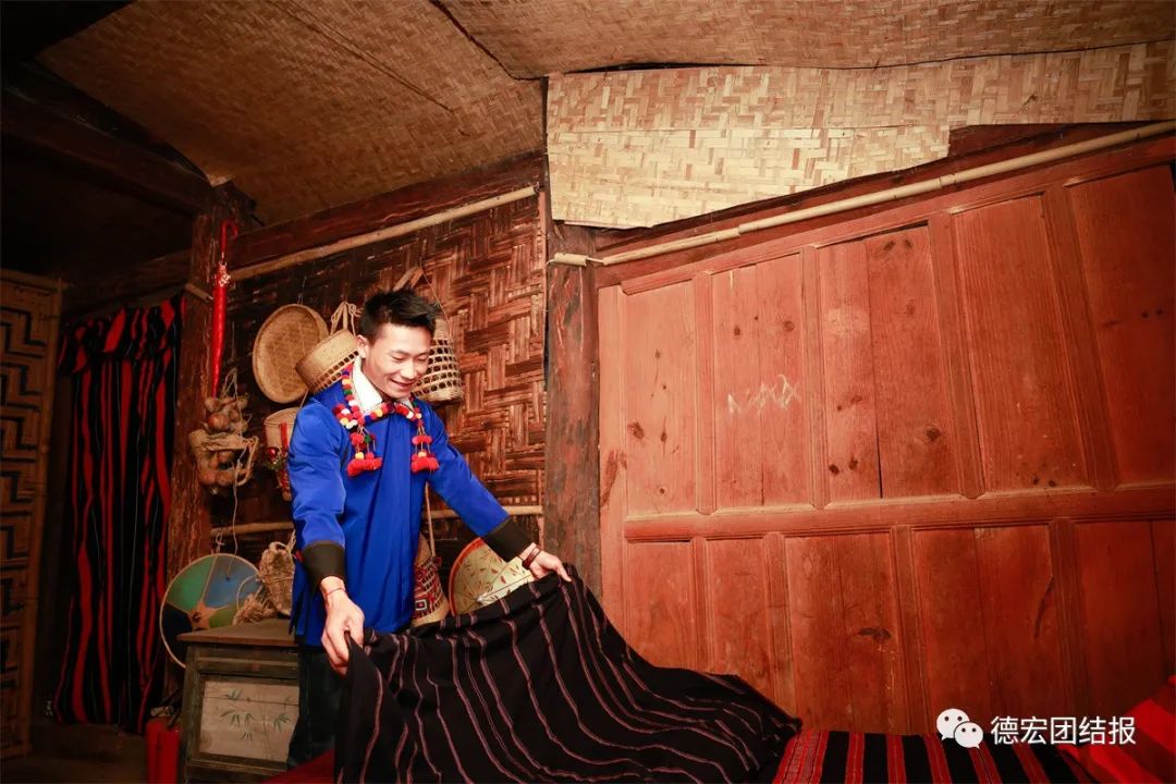 沿着陡峭山坡,古朴实用的德昂民居一层一层建到山顶,与青山绿水和田园风光融为一体。据史书记载,唐朝时期德昂族先民已经过上了楼居生活,他们以木做梁、以板作壁,建起干栏式的穿斗房,因地制宜、就地取材建设着自己的家园。2017年,李岩所将自家的传统民居改造为民宿客栈,留住了越来越多探寻德昂文化的脚步。