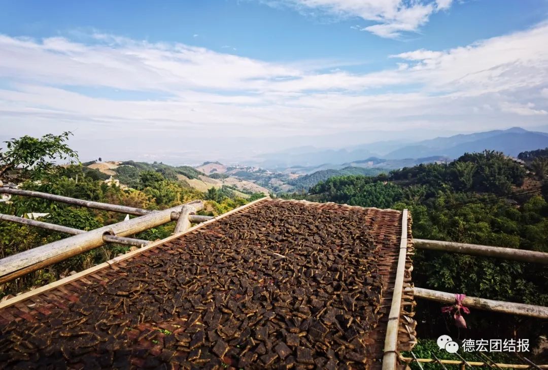 德昂族热爱茶的历史亘古绵远,最具特色的德昂酸茶,茶汤嗅之微酸,品之轻柔爽口,回味甘甜,余韵悠长。研究检测报告显示,酸茶含有大量益生菌,茶多酚中儿茶素的含量也明显超过其他茶类,对健康十分有益。
